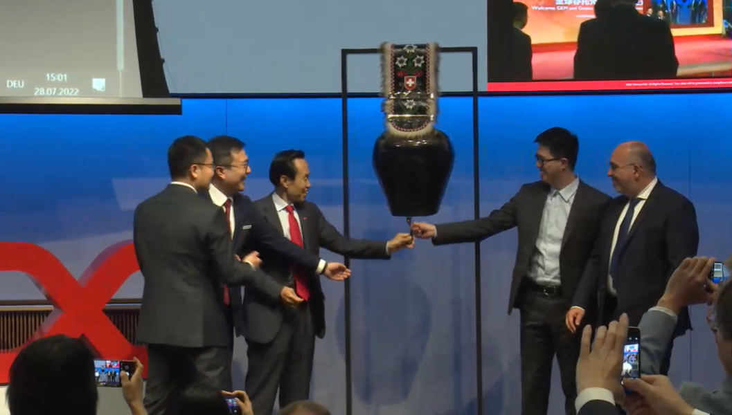 7月28日晚9點(瑞士時間7月28日下午3點),瑞士證券交易所正式啟動“中瑞股市互通”的 GDR 部分,作為首批中國公司之一,杉杉股份GDR正式登陸瑞交所。中國駐瑞士大使王世廷、瑞交所Tom Zeeb先生(Head Exchanges)出席儀式,杉杉股份董事長鄭永剛等中國公司代表出席儀式并發言。同一時間,杉杉科技董事長李鳳鳳在上海證券交易所同步敲鑼。